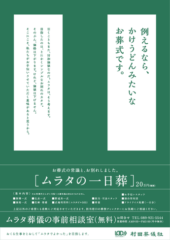 ムラタについて広告一覧 動画 ぬいぐるみ供養祭 2024ぬいぐるみ供養祭 2023ぬいぐるみ供養祭 2022ぬいぐるみ供養祭 2021ぬいぐるみ供養祭 2020ぬいぐるみ供養祭 2019ぬいぐるみ供養祭 2013ぬいぐるみ供養祭 2012ぬいぐるみ供養祭 CM・WEB動画 自分らしく生きる。 観光列車をおくるを考る 企業 時代劇編 企業 昔話編 90周年 企業 旅立ち編 男性 60秒 企業 旅立ち編 女性 60秒 企業 旅立ち編 男性 30秒 企業 旅立ち編 女性 30秒 グラフィック ぬいぐるみ供養祭2024 お葬式は文化です 広告 バレリーナ 110th新聞広告 ぬいぐるみ供養祭2023 ぬいぐるみ供養祭2020 弔句歌壇 新聞広告 弔句歌壇 ポスター 自粛広告 リビングまつやま 自粛広告 ポスター ムラタの家族葬 チラシ ムラタの家族葬 チラシ 弔句歌壇 新聞広告 創業107年 新聞広告 ムラタのご自宅葬 チラシ ムラタ南 新聞広告 ムラタの一日葬 チラシ ムラタのペット供養祭 新聞広告 ムラタのペット供養祭 ポスター ムラタのペット供養祭 チラシ ぬいぐるみ供養祭2019 新聞広告の日 新聞広告 ムラタの終活セミナー 新聞広告 ムラタの樹木葬 ポスター ムラタの海洋散骨 ポスター ムラタの音楽葬 ポスター ぬいぐるみ供養祭2018 デジタル遺品サポートサービス ポスター ムラタの終活セミナー 新聞広告 ムラタの一日葬 チラシ ぬいぐるみ供養祭2017 手元供養 チラシ ぬいぐるみ供養祭2016 ムラタホール市駅 リニューアル内見会 新聞広告 ムラタの終活セミナー 新聞広告 ムラタの終活セミナー ポスター 村田葬儀社100周年 新聞広告 ぬいぐるみ供養祭2013 リクルート2013 ポスター 会社案内 新オフィス 新聞広告 事前相談 チラシ ぬいぐるみ供養祭 ポスター ムラタの家族葬 チラシ ムラタの家族葬 チラシ ぬいぐるみ供養祭2011 ぬいぐるみ供養祭 ポスター ムラタホール古川 チラシ ムラタホール古川 オープン 新聞広告 ぬいぐるみ供養祭 ポスター 事前相談 チラシ 事前相談 ポスター ムラタの家族葬 チラシ 事前相談 チラシ ぬいぐるみ供養祭 ポスター ぬいぐるみ供養祭 ポスター 90周年新聞広告